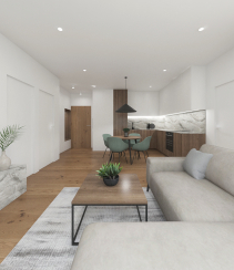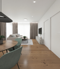 Finansuojamų apartamentų su daline apdaila plotas – 55.96 m². Pirmajame etape finansuojamas objekto įsigijimas, vėliau įrengus bus finansuojamas antrasis – atsiskaitymas su rangovais.