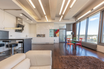 The apartment of 126.71 m² is located on the 15th floor with an excellent view of all the main sites of Vilnius. This fully furnished apartment will be rented for long-term and is just a few minutes walk from the Parliament of the Republic of Lithuania.