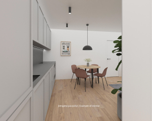 Šis projektas orientuotas į ilgalaikę nuomą. Atlikus įrenginimo darbus planuojama generuoti 1,000 EUR nuomos pajamų per mėnesį iš šio trijų kambarių buto kartu su požeminio parkavimo vieta.