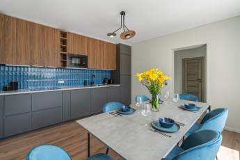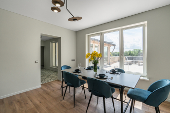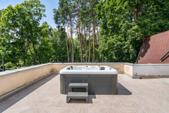 Objekto plotas – 431.45 m², kurį sudaro aštuoni atskiri apartamentai iš kurių vienas dviejų kambarių, vienas trijų kambarių su terasa ir vienas su baseinu ir pirtimi.