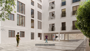 Artimiausiu metu numatoma pastato komercializacija – projekte planuojama įrengti 25 – 40 m² dydžio butus, skirtus nuomai. Tuo pačiu pastate numatoma sporto salė, pirčių kompleksas bei dviračių saugykla, tai galite matyti – projekto galerijoje.